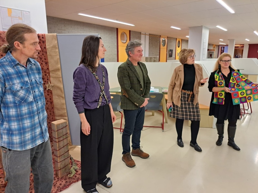 Direktor Hannes Wolf und die Professoren Julia Entner und Simon Nickles empfingen mit einer Abordnung von Schülerinnen und Schülern Club-Präsidentin Christine Wolf und Friedensplakat-Beauftragte Ingrid Zemrosser im Bundesschulzentrum St. Veit/Glan.